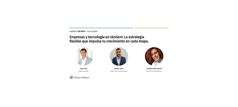En aquesta sessió, acompanyaran l’Albert Lleal l’Antonia Felix García, Responsable de RRHH a NIMA Grup d’Automoció i en Xavier Gil, Director Comercial de Canal a Wolters Kluwer.